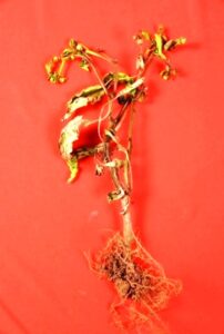 In seedlings, damping off associated with root-rot can kill plants. In older plants, root infections can result in stunting, wilting, and eventual plant death in approximately two weeks.